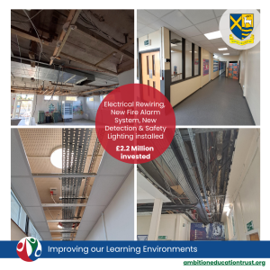 ✅ Electrical Works – Full rewiring of the school, installation of a new fire alarm and upgraded detection and emergency lighting to meet L2 compliance standards: £2.2 million invested