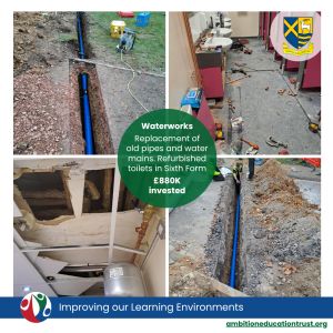 ✅ Waterworks – Complete replacement of 60-year-old pipework, installation of new mains water distribution throughout the school, and upgrades to all taps, heaters and valves in washrooms, the kitchen, and staff room: £880K invested
