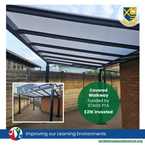 ✅ Covered Walkway – A new STAGS PTA funded walkway connecting Parks Building with the main school, creating a more comfortable and weatherproof link for all staff and students: £21K invested